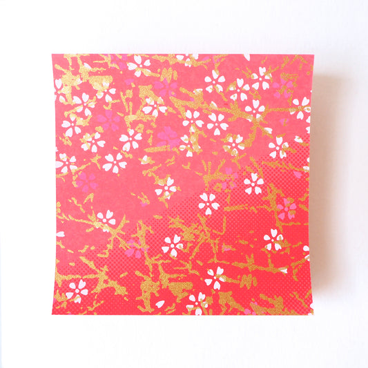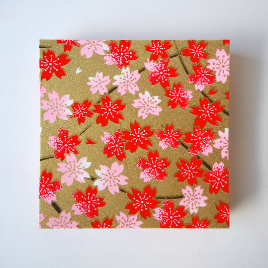 Paquet de 100 feuilles de papier origami Yuzen Washi 7x7 cm HZ-490 - Fleur de cerisier rose rouge or