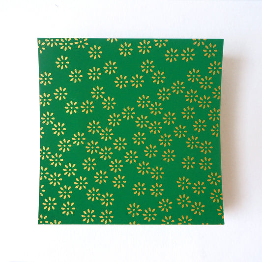 Paquet de 100 feuilles de papier origami Yuzen Washi 7x7 cm HZ-288 - Petit chrysanthème vert