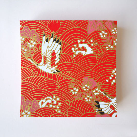 Paquet de 100 feuilles de papier origami Yuzen Washi 7x7 cm HZ-315 - Grues et vagues rouge