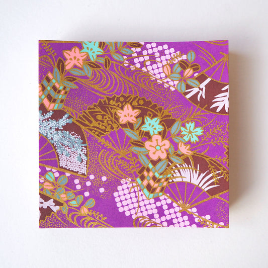 Paquet de 100 feuilles de papier origami Yuzen Washi 7x7 cm HZ-370 - Éventails floraux et eau qui coule violet