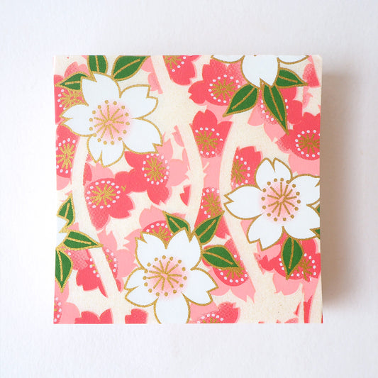 Paquet de 100 feuilles de papier origami Yuzen Washi 7x7 cm HZ-351 - Fleur de cerisier printanière