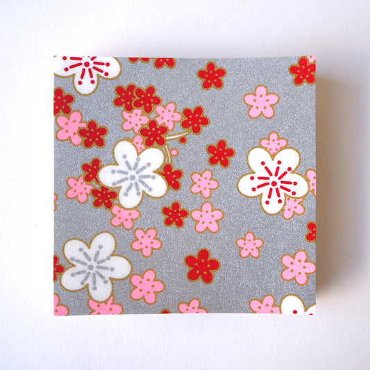 Paquet de 100 feuilles de papier origami Yuzen Washi 7x7 cm HZ-491 - Fleur de cerisier rose rouge argent