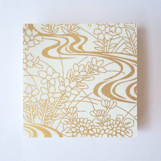 Paquet de 100 feuilles de papier origami Yuzen Washi 7x7 cm HZ-088 - Jardin d'eau qui coule doré