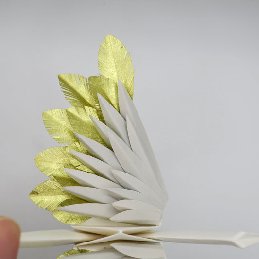 Grue à plumes en origami - Or caché