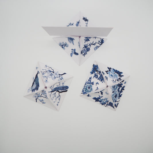 Carte de place origami en porcelaine bleue et blanche sur mesure, porte-cartes nominatives