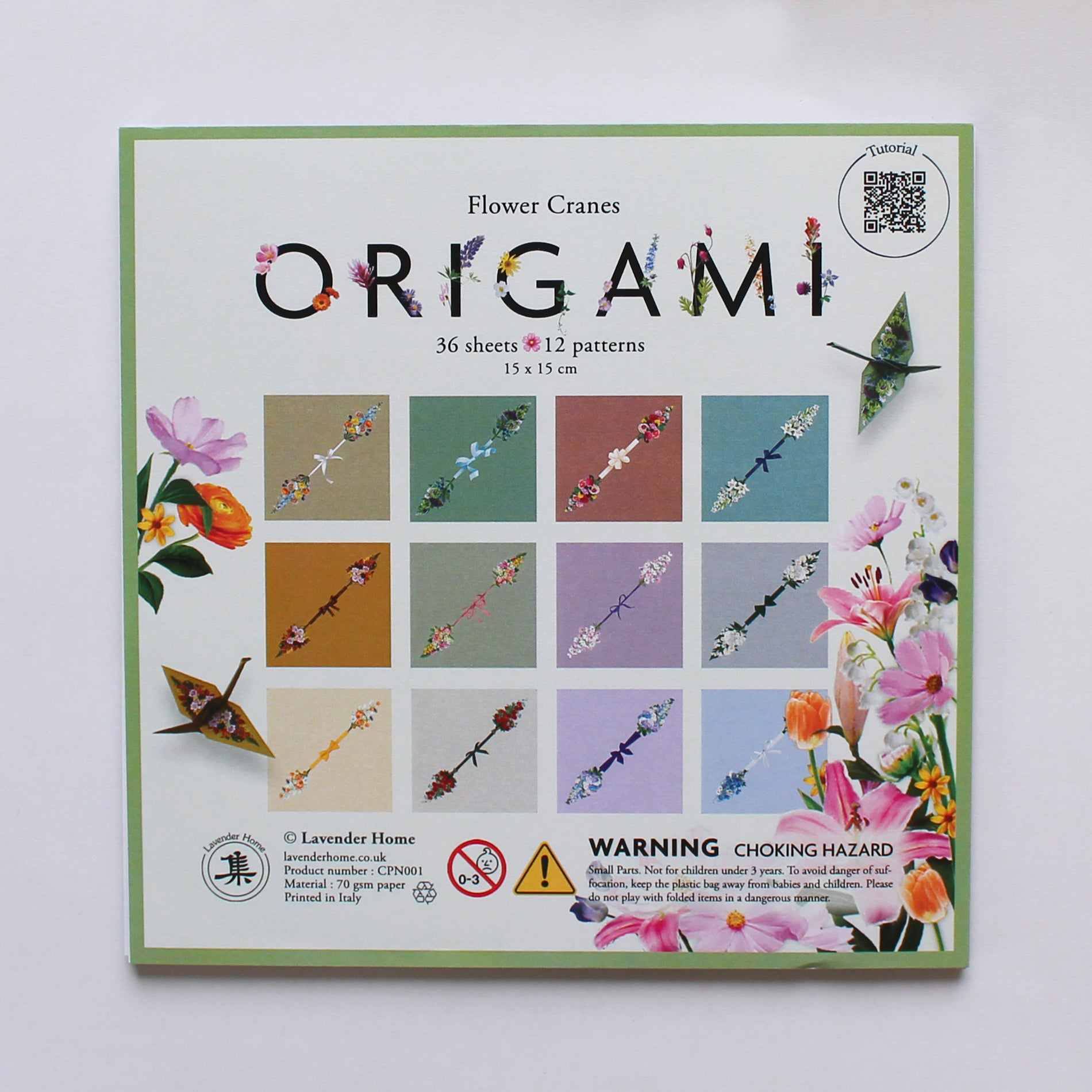 36 sheets of flower crane origami paper, featuring 12 different patterns with 2 sheets each