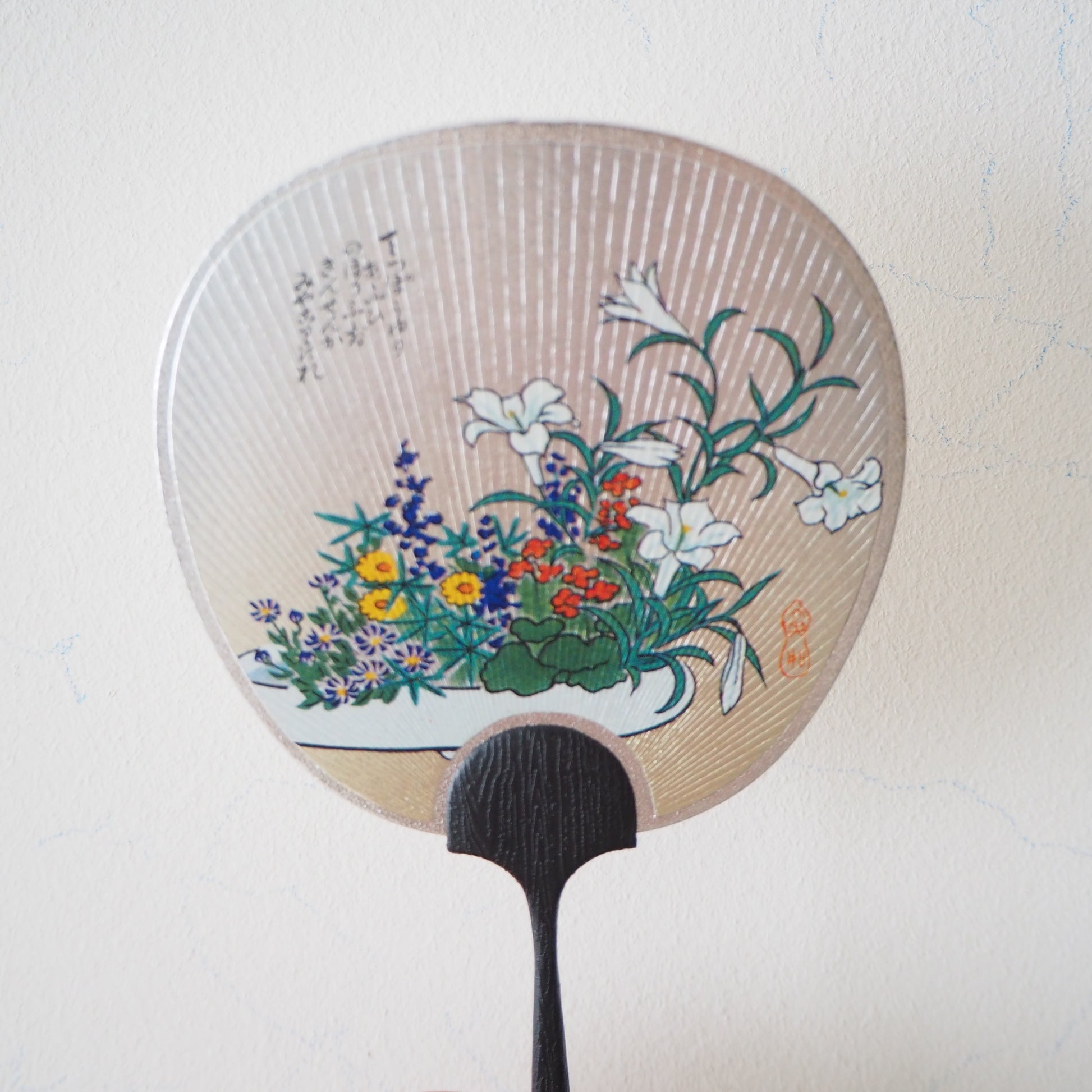 Petite carte de vœux en forme de ventilateur Uchiwa - Lit de fleurs