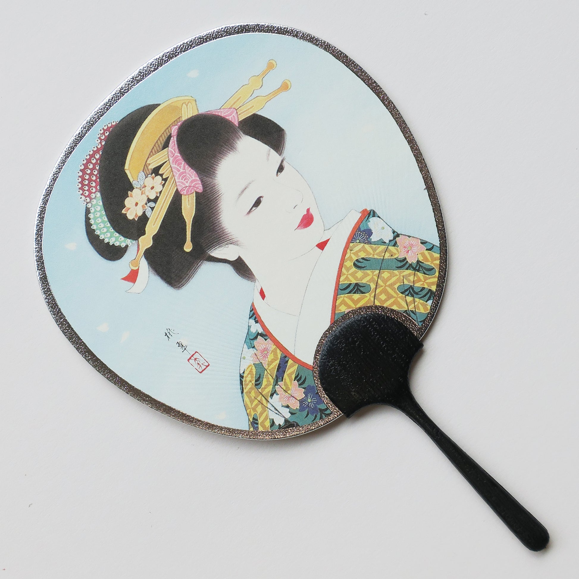 Cette magnifique carte Uchiwa sert à la fois de carte de vœux et d'éventail, ce qui en fait un cadeau unique et merveilleux. Uchiwa est un éventail traditionnel japonais offert en cadeau pendant les vacances japonaises.