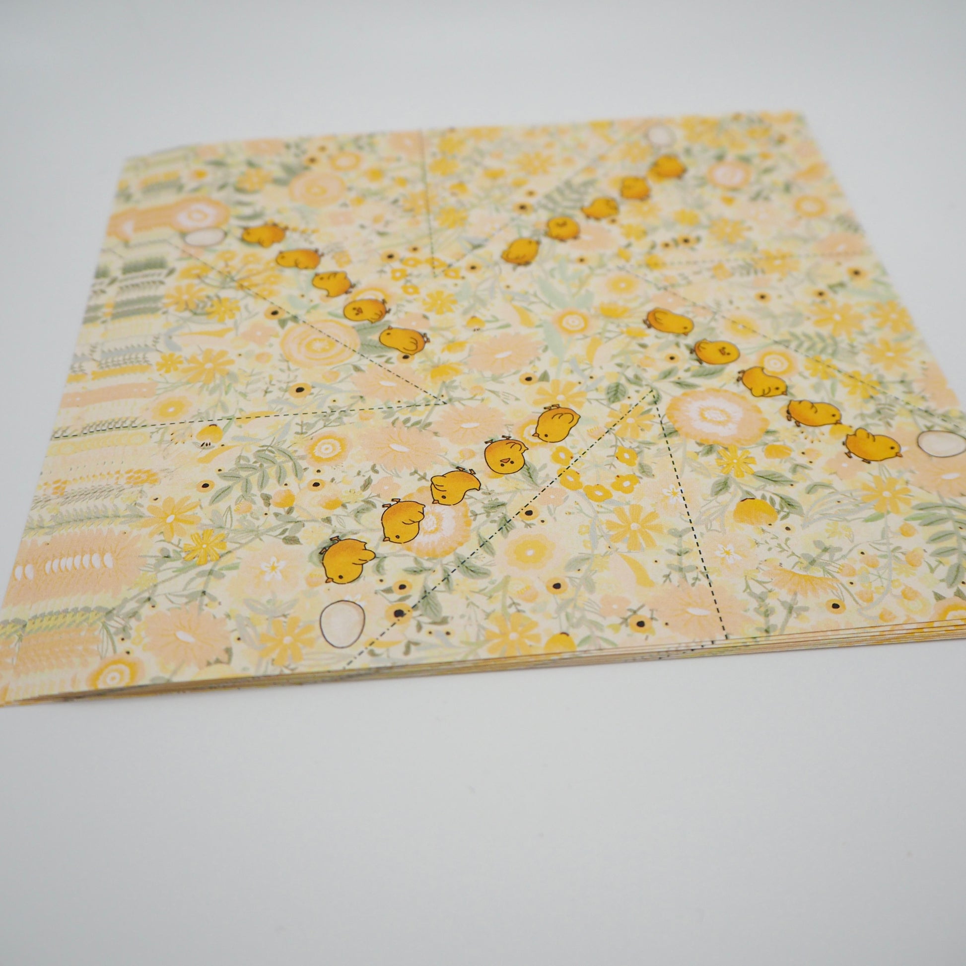 20 sheets of 15x15cm Easter chick origami paper with 2 patterns for making origami egg cup (10 sheets each) and 5 sheets of 21x21cm Easter bunny origami paper for various origami models