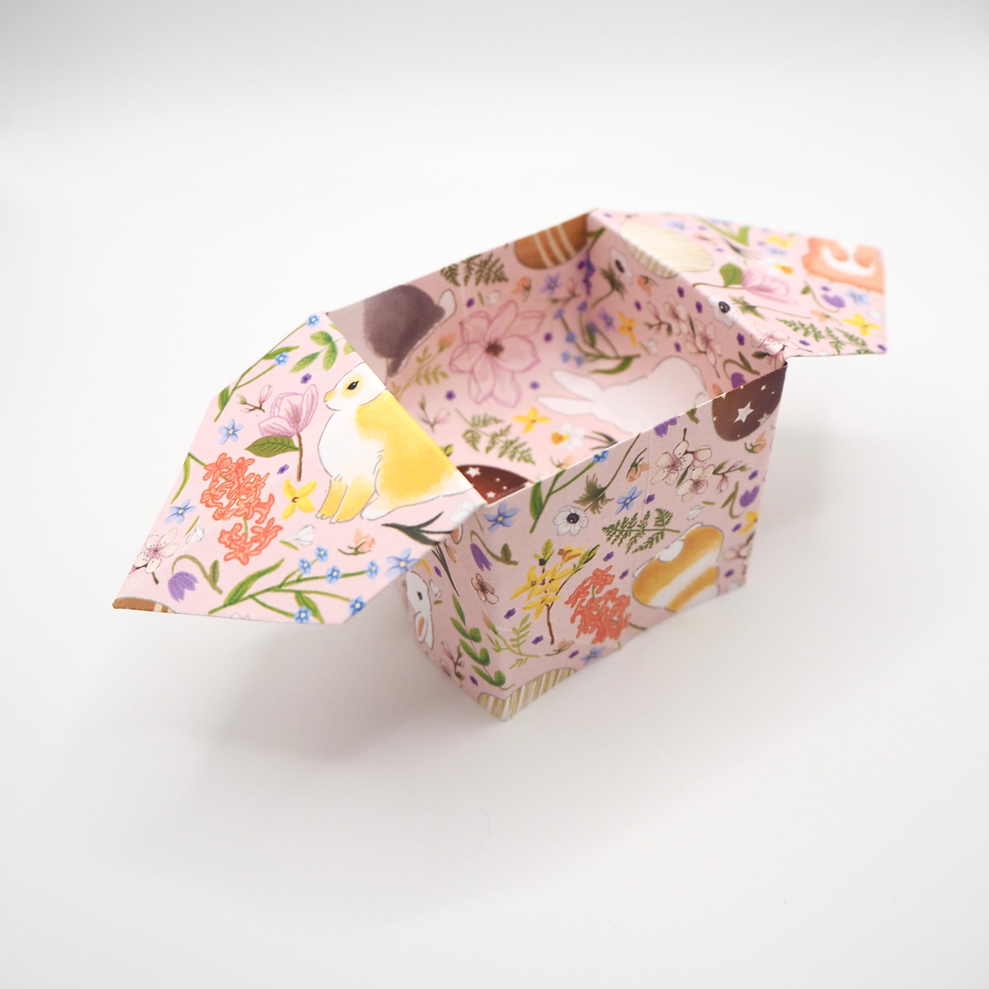 Hop on the fun with our Easter Bunny & Chick Origami DIY pack. Featuring a beautiful Easter-themed pattern, this pack allows you to turn your origami projects into a delightful Easter activity. Create an egg cup and sweet box with ease and bring some festive fun to your Easter celebrations. It is also a cute set for making boxes for parties and gifting.