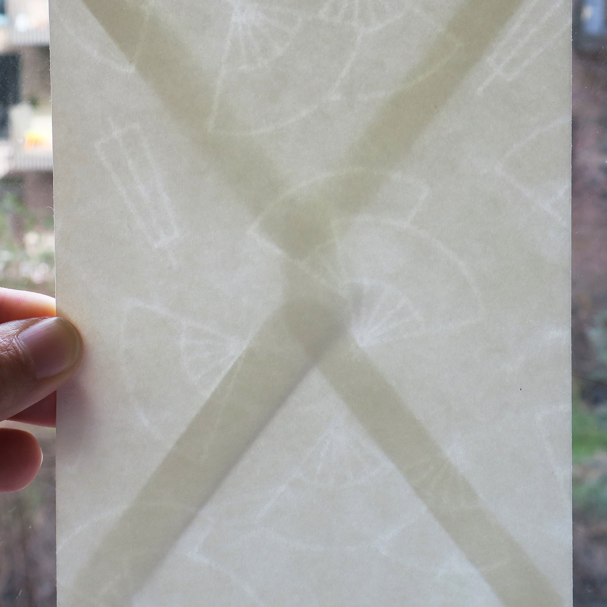 The envelope is made from premium washi paper, featuring a subtle fan-shaped watermark. Semi-transparent when held to the light, it exudes delicate elegance and traditional Japanese beauty.